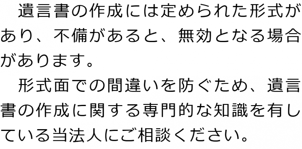 しかし、少しでも形式面に不備があると、無効となってしまいかねないのが、遺言作成の怖いところです。