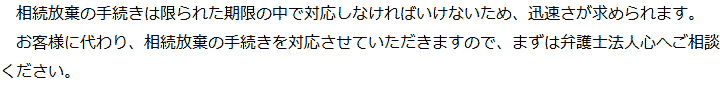 トップ業務内容相続放棄 階層構造▼ 業務内容(目次) 相続放棄 業務内容(目次)業務内容トップ行政書士法人心の業務内容遺言遺産整理相続人調査相続財産調査遺産分割協議書の作成預金・貯金の解約・名義変更証券口座の解約・名義変更自動車の名義変更心グループのその他の業務内容家族信託・民事信託節税対策事業承継遺言の検認相続放棄限定承認遺産分割遺留分侵害額請求相続登記相続税申告相続税調査 受付時間 平日 9時~21時、土日祝 9時~18時 夜間・土日祝の相談も対応します (要予約) 所在地 〒194-0021 東京都町田市中町1-2-2森町ビル3F 0120-2403-39 お問合せ・アクセス・地図