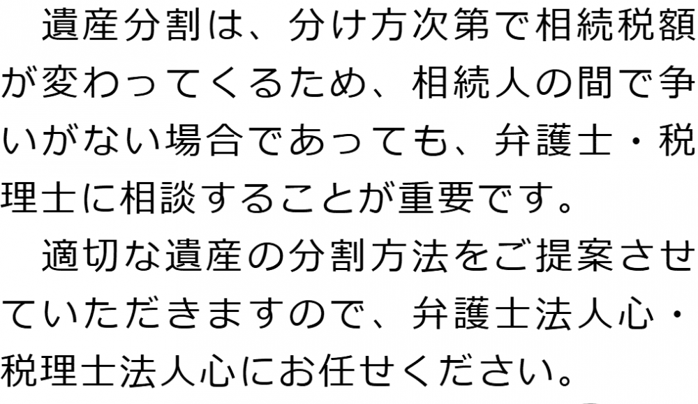 トップ業務内容遺産分割 階層構造▼ 業務内容(目次) 遺産分割 業務内容(目次)業務内容トップ行政書士法人心の業務内容遺言遺産整理相続人調査相続財産調査遺産分割協議書の作成預金・貯金の解約・名義変更証券口座の解約・名義変更自動車の名義変更心グループのその他の業務内容家族信託・民事信託節税対策事業承継遺言の検認相続放棄限定承認遺産分割遺留分侵害額請求相続登記相続税申告相続税調査 受付時間 平日 9時~21時、土日祝 9時~18時 夜間・土日祝の相談も対応します (要予約) 所在地 〒194-0021 東京都町田市中町1-2-2森町ビル3F 0120-2403-39 お問合せ・アクセス・地図